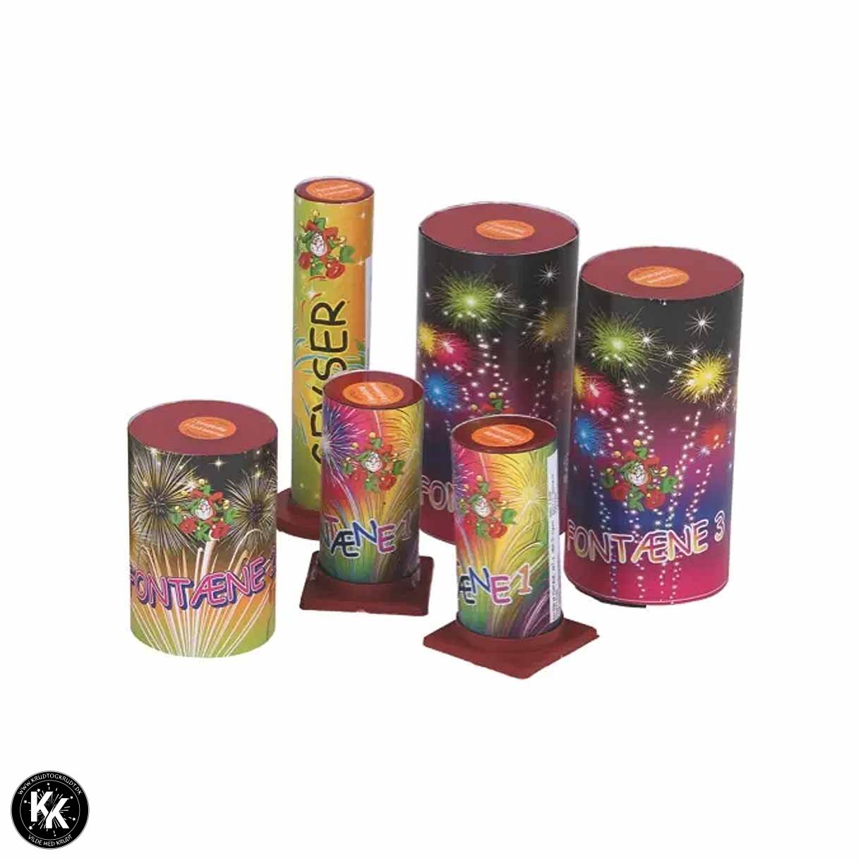 Joker fontæne-sortiment med 6 flotte og farverige fontæner med forskellige former, farver og effekter.