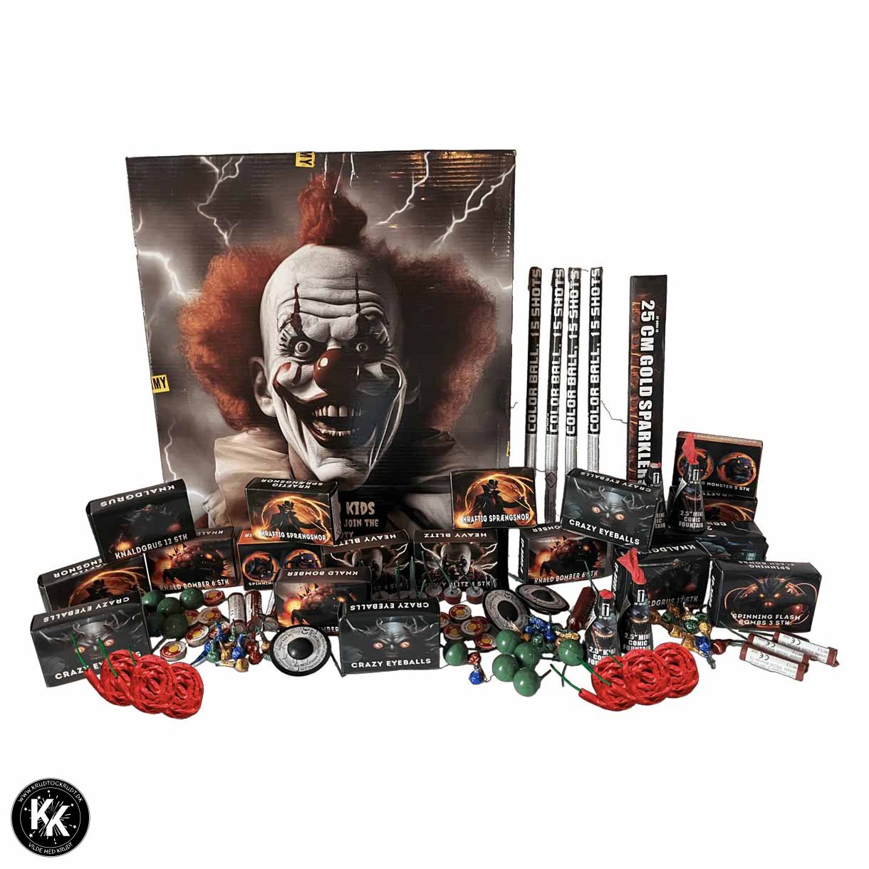 Med denne pakke kommer den unge fyrværker ikke til at kede sig.