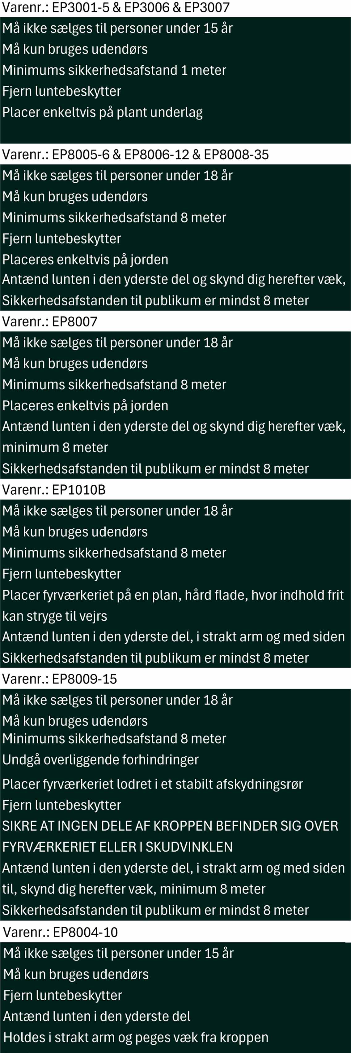 P401: Opbevares i henhold til nationale regler, MAX 5 kg. NEM pr. husstand